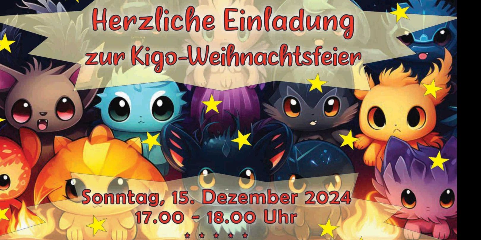 Herzliche Einladung zum Weihnachtsspiel „Pokemon gesucht“ der Kigo-Kinder. Anschliessend Imbiss und Dessertbuffet im UG. Einladung siehe Datei im Anhang zum Weitersenden.